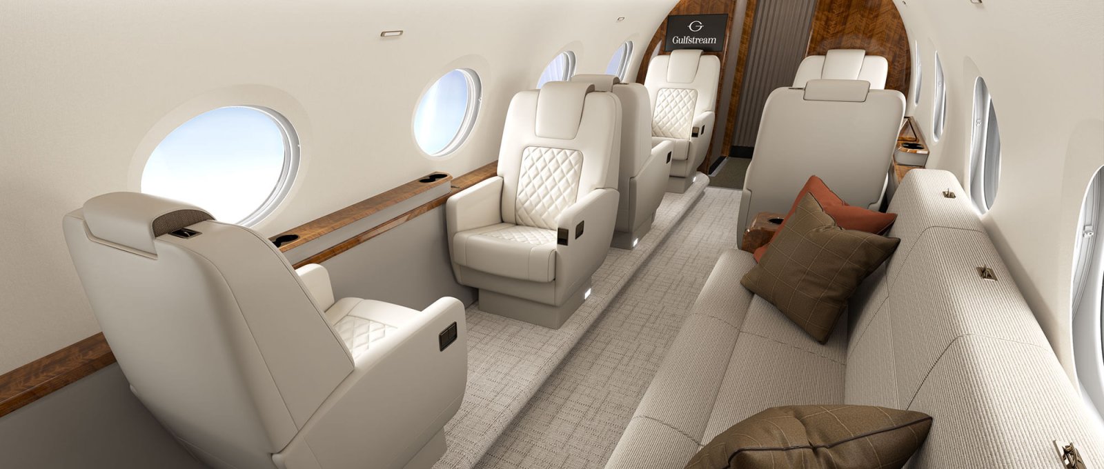 The Gulfstream G300 cabin is designed to provide a comfortable and productive environment for passengers during private flights.